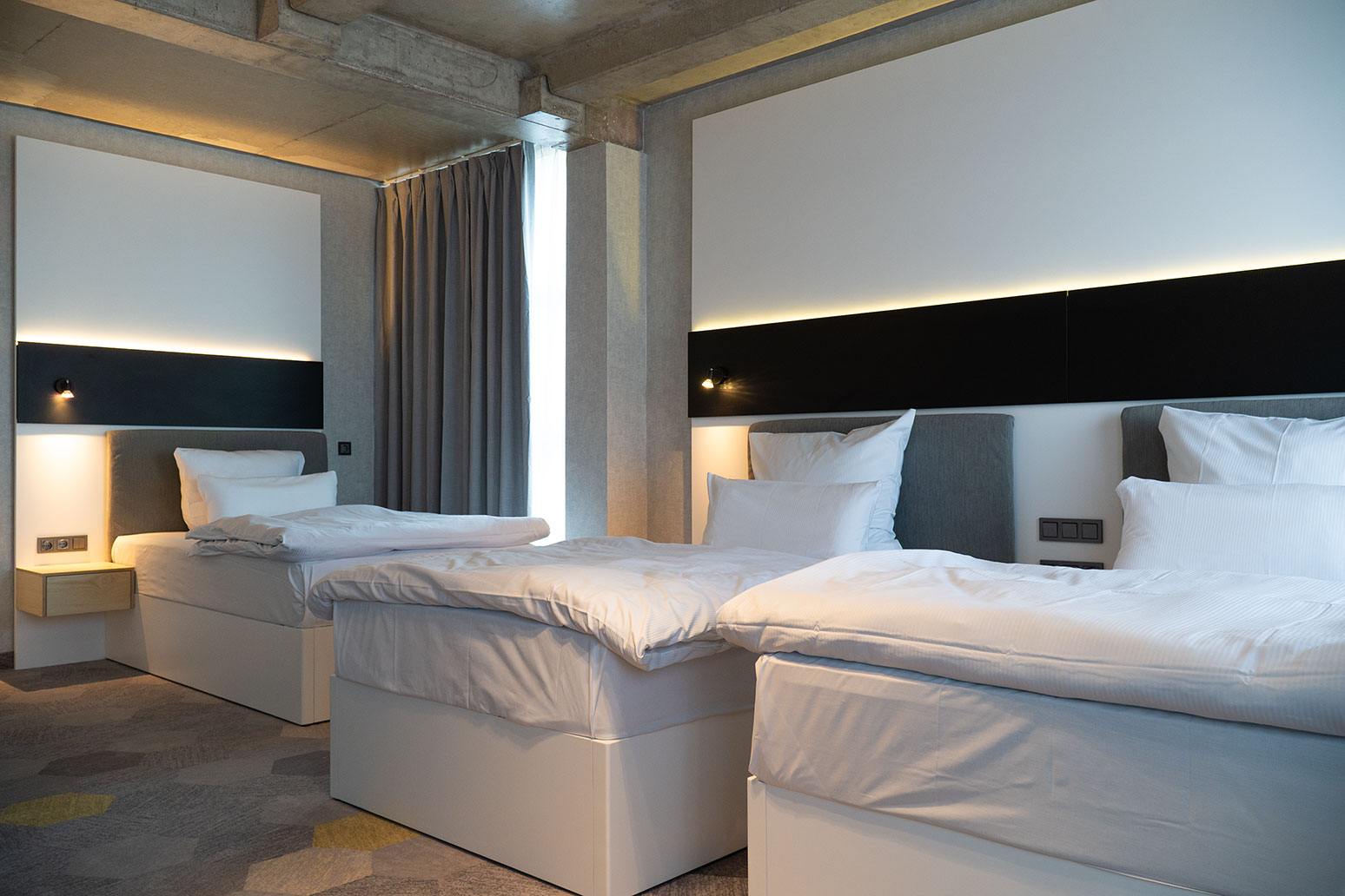 In unseren modern eingerichteten Zwei- und Dreibettzimmern sowie den Suiten können Sie auf ein Höchstmaß an Komfort und Gemütlichkeit bei erschwinglichen Preisen zählen.